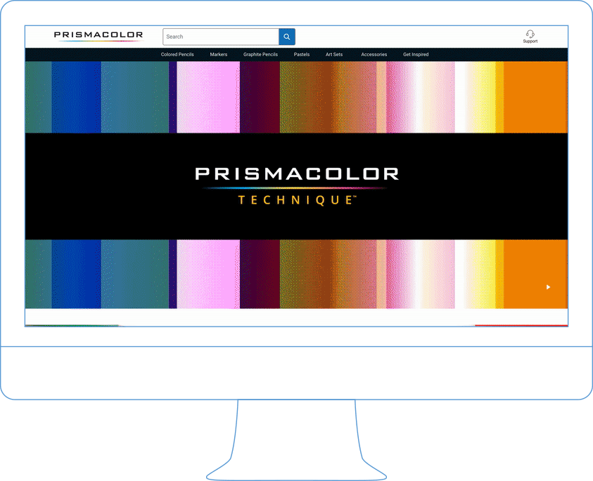 For the launch of Prismacolor Technique, I designed and developed an interactive landing page within Prismacolor’s website, transforming a rigid platform into a seamless, engaging experience. Working within strict functionality constraints, I reimagined modules (using strategic graphics, images, and layout adjustments) to create a dynamic, intuitive user experience while ensuring full platform compatibility. I conducted extensive testing across devices and collaborated with technical web designers to optimize assets for responsiveness, content safe-zones, and breakpoints. The result was one of the highest-performing pages in Newell Brands’ Writing division, driven by high-quality visuals, engaging video, and valuable instructional content.